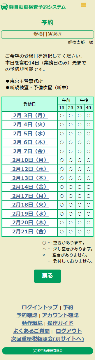 新規検査・予備検査(新車)の予約